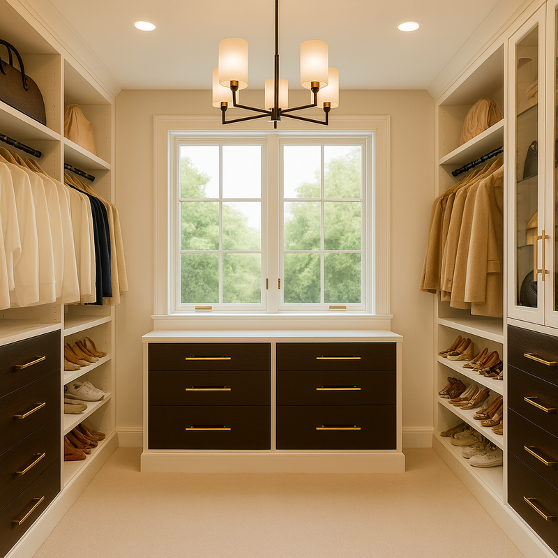 From closets and pantries to mudrooms, garages, offices, and wine rooms—I design custom spaces that combine beautiful aesthetics with smart functionality. Whether you’re renovating, building new, or refreshing an existing room, I’ll help you create a space that feels curated, efficient, and intentionally tailored to your lifestyle.